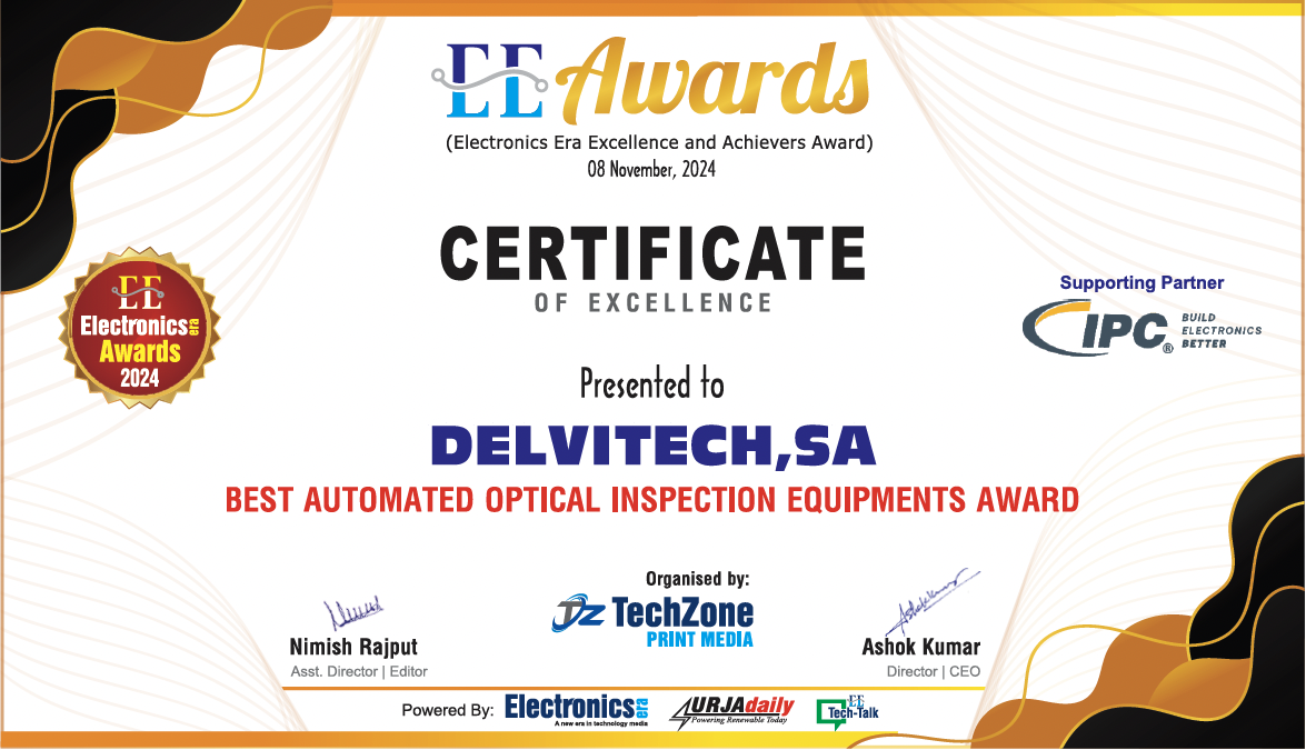 It is with immense pride and gratitude that we announce Delvitech’s latest milestone: recognition as the “Best Automated Optical Inspection Equipment” provider at the prestigious EE Excellence and Achievers Awards 2024, hosted by Electronics Era.